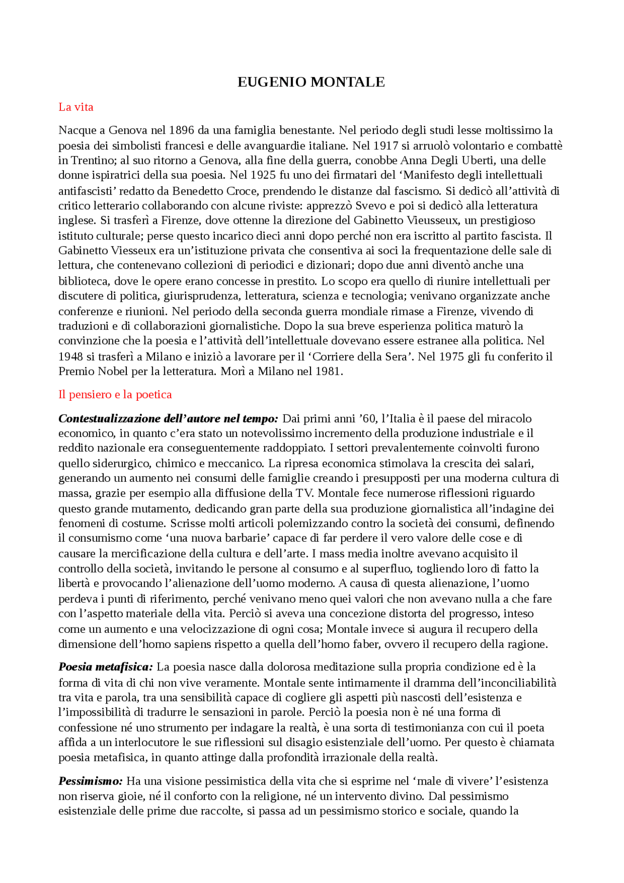 File Completo Su Montale Vita Analisi Opere Pensiero E Poetica Docsity